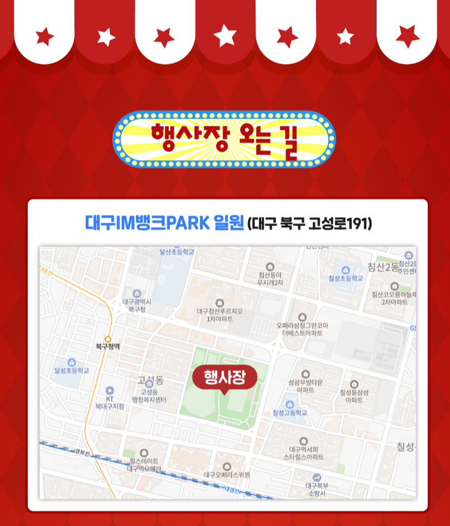 - 장소: 대구 iM뱅크파크(舊 시민운동장) 일원 / 주소 대구 북구 고성로 191
