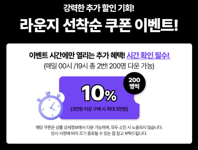주의사항: 할인 혜택은 기간 한정이므로, 할인 기간 내 구매를 완료해야 합니다. 또한 재고 소진 시 추가 할인 혜택이 종료될 수 있으므로 빠른 구매를 권장합니다.