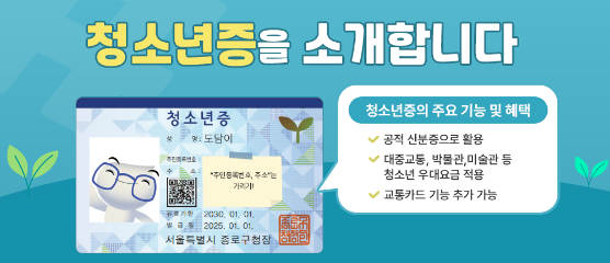 학교 밖 청소년일수록 사회서비스 접근성이 낮은 경우가 많은데, 이럴 때 청소년증은 공공시설 접근의 유용한 수단이 됩니다.