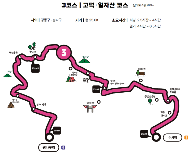 - 산책화 또는 운동화 착용 필수 (자갈길 포함된 구간 존재)