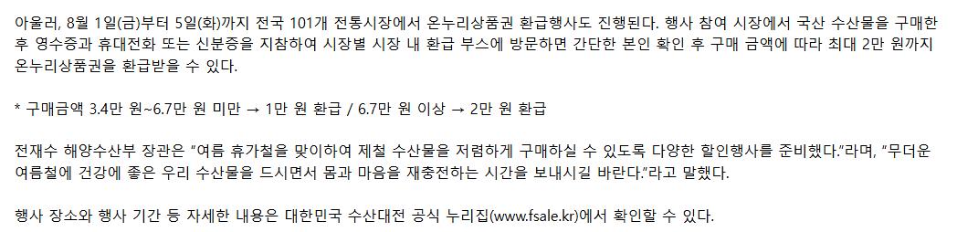 | 행사명 | 여름휴가 온누리상품권 환급행사 |