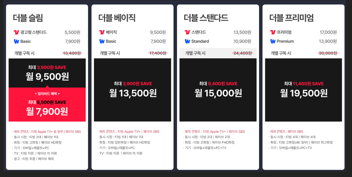 - 티빙 광고형 스탠다드 + 웨이브 베이직 구성