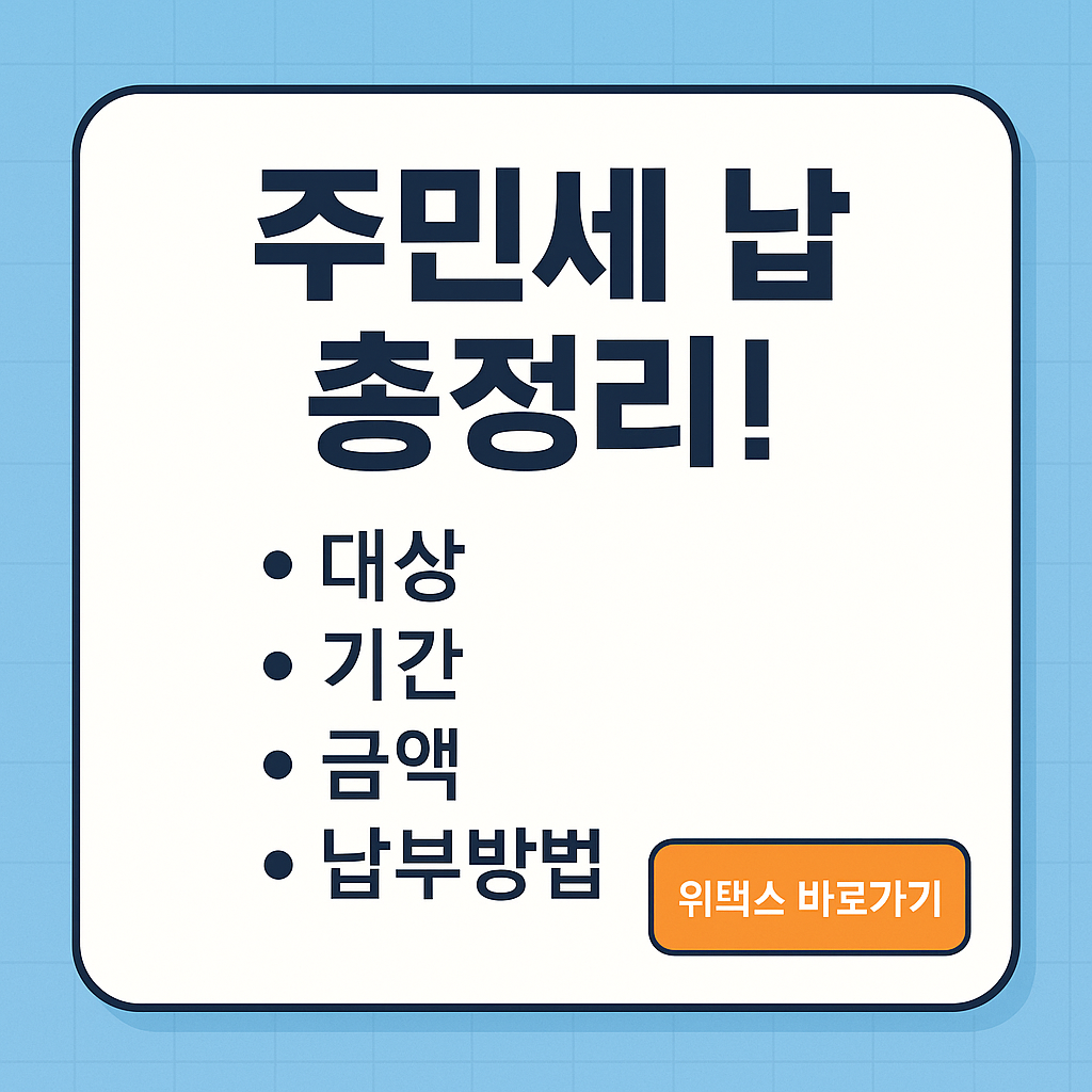 올해(2025년) 주민세는 개인분·사업소분·종업원분으로 구분해 부과·신고·납부가 진행됩니다. 본 글은 언제·누가·얼마를·어떻게 내야 하는지, 위택스/이택스에서 전자송달·자동납부까지 설정하는 법, 가산세/환급 포인트를 깔끔하게 정리한 블로그형 가이드입니다.
