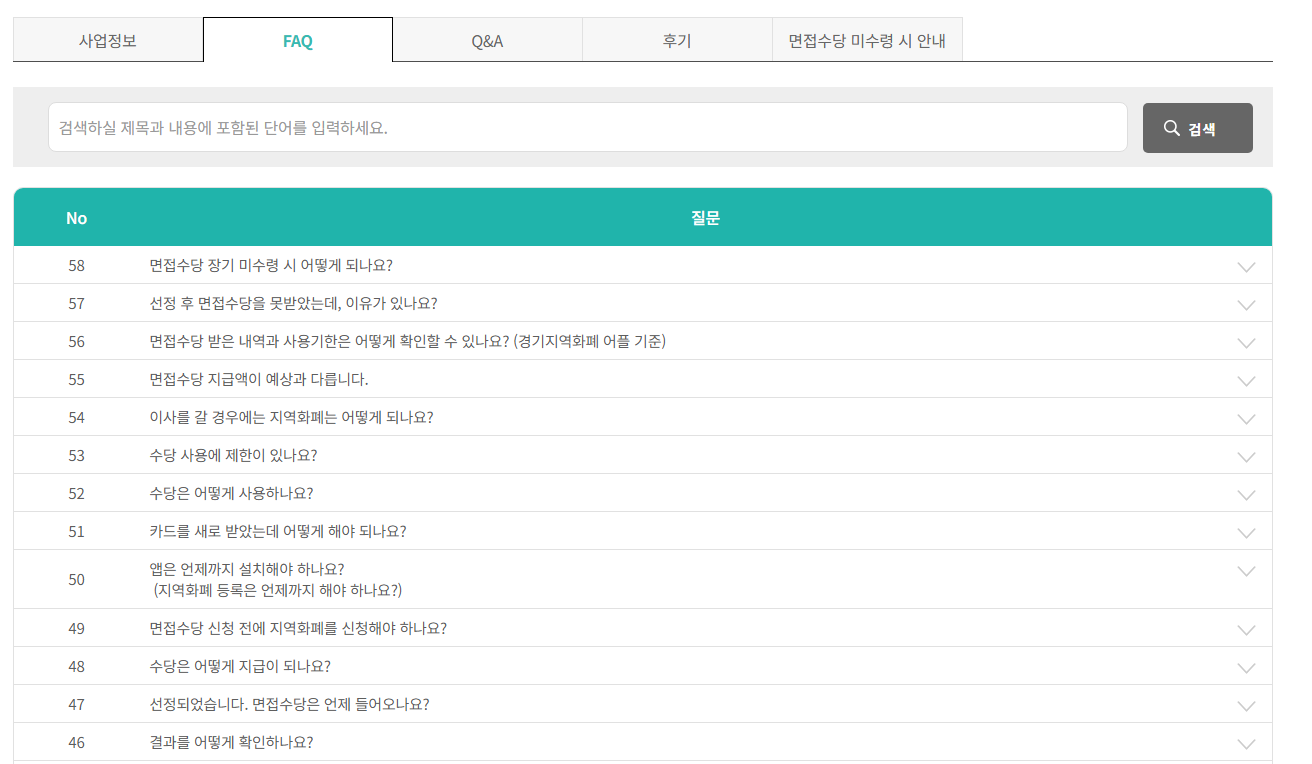 7. 경기도 청년 면접수당 유의사항