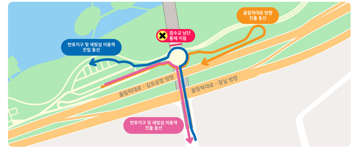- 통제 시간: 11:00 ~ 23:00 (잠수교 전 구간)