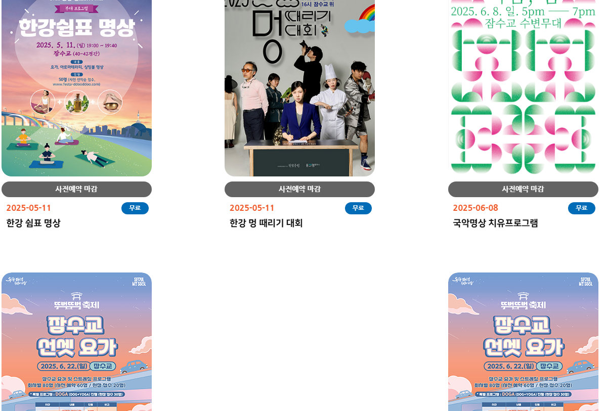 - 특별 프로그램: 가면 퍼레이드, 한강 명상, 선셋 요가 등 사전예약 혹은 현장 참여 프로그램