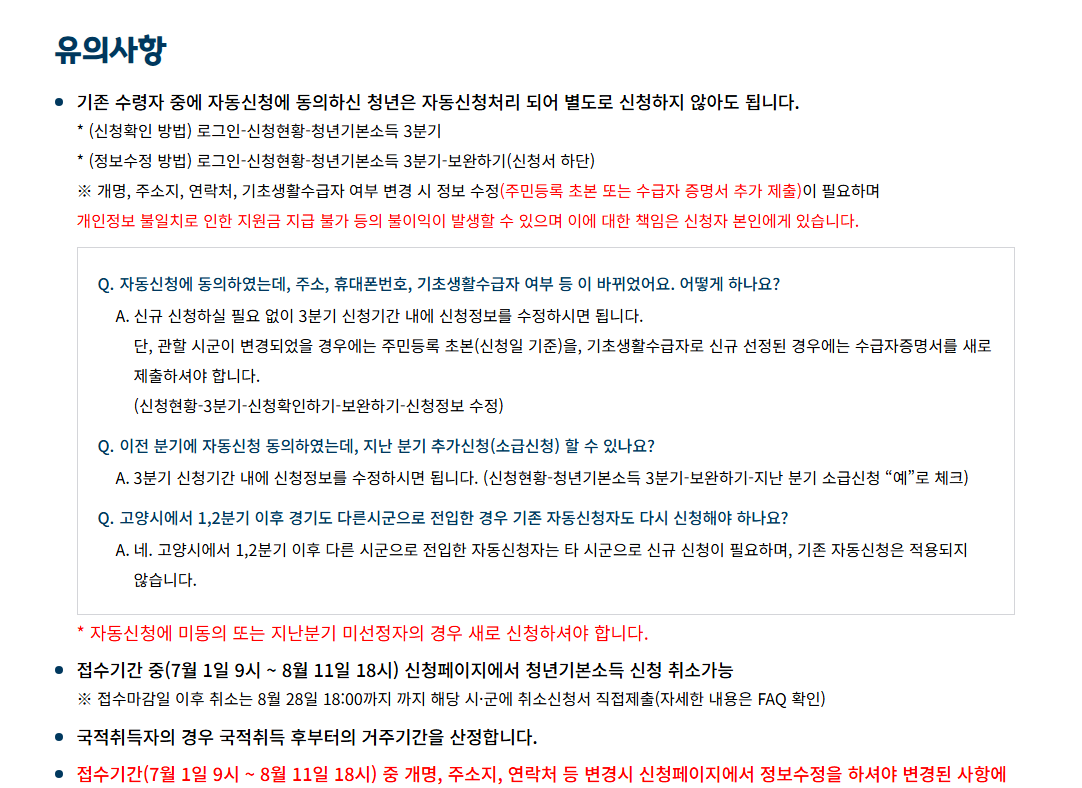 - 2분기 자동 신청 동의했던 청년은 별도 신청 없이 심사 진행되며,
