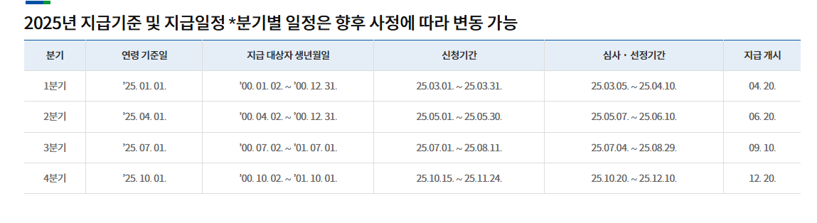 - 9월 10일 이후 순차 지급 (연 25만 원/분기)