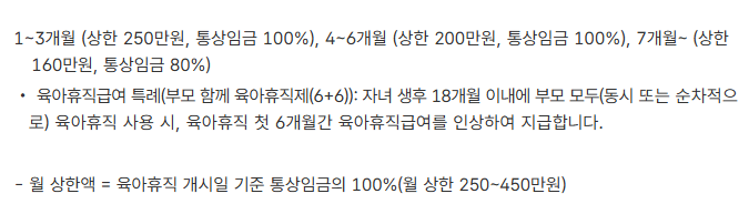 - 일부 기업은 분위기상 육아휴직 신청이 쉽지 않은 경우도 있습니다. 관련 노동부 상담센터 이용 권장.
