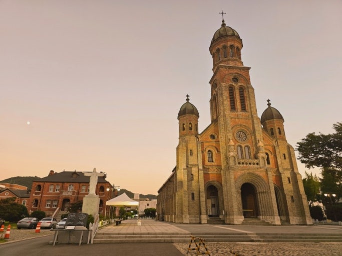 - 전동성당 앞 광장 – 고풍스러운 스냅 사진