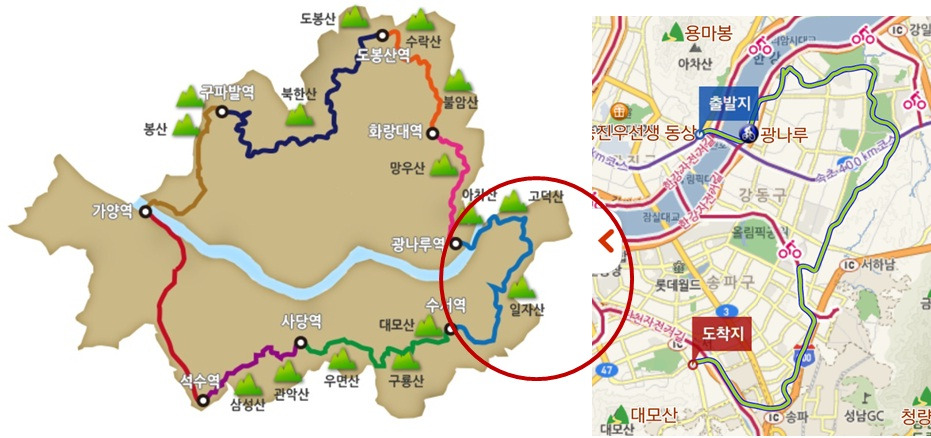 북한산 우이역수락산역 - 대중교통: 각 구간 출발지점에서 접근 용이