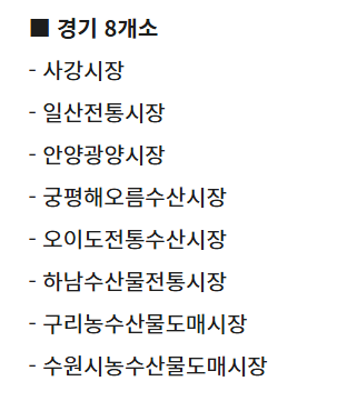 - 경기도는 수산물도매시장 중심으로 8개 시장 참여