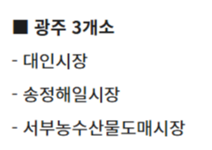 - 대인시장, 송정해일시장, 서부농수산물도매시장