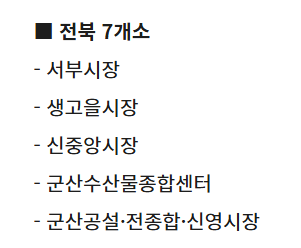 | 참여 시장 | 전국 주요 전통시장, 도매시장 포함 약 100개소 이상 |