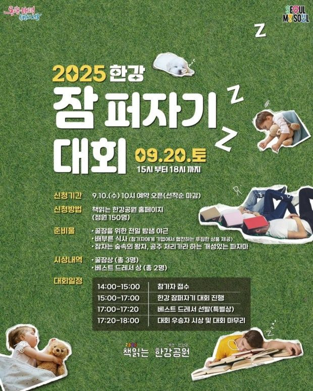2025 한강 잠 퍼자기 대회 9월 20일 개최! 9월 10일 사전접수 시작 신청일정 신청방법 평가기준 준비물 총정리