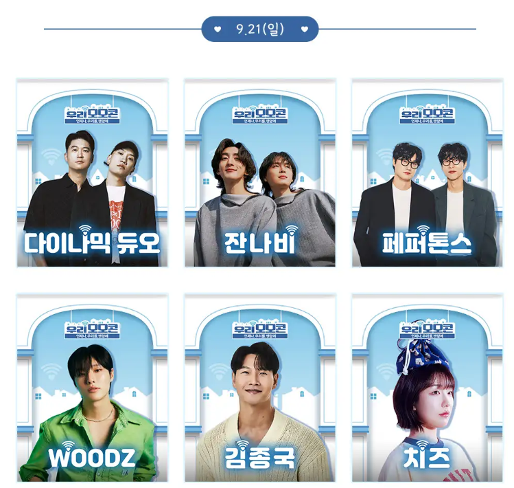 - WOODZ, 김종국, 페퍼톤스 등은 X(구 트위터) 공식 계정으로도 일자와 함께 공지되었습니다.