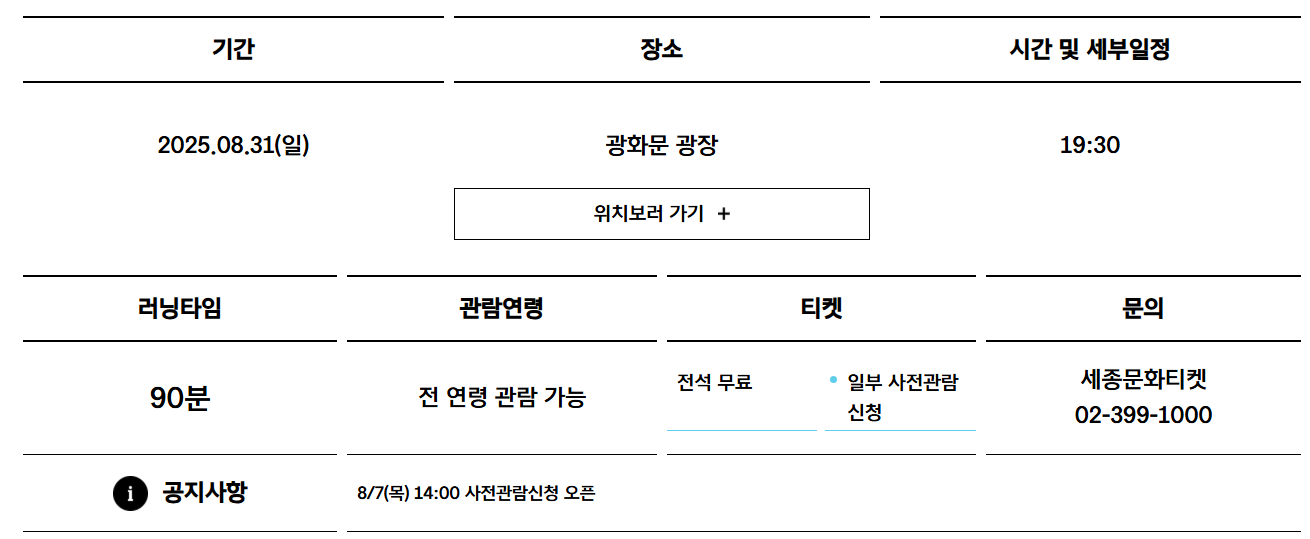 - 세종문화회관 인도어 루트: 클래식/재즈/국악 큐레이션, 체험·워크숍/토크 일부.
