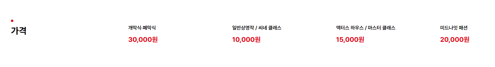 - 영화제 기간(9/17(수)~9/26(금)): 1장당 1,000원