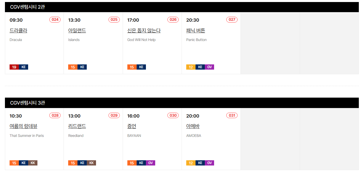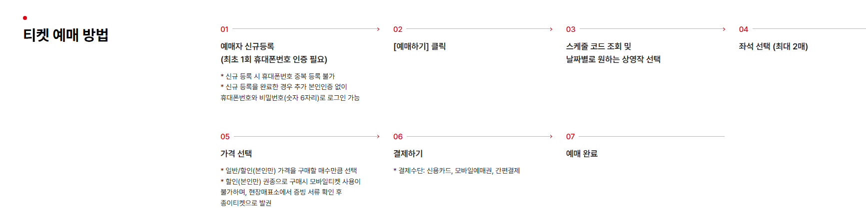 - 판매 범위: 당일 상영작 및 익일 1·2회차 상영작만 구매 가능.