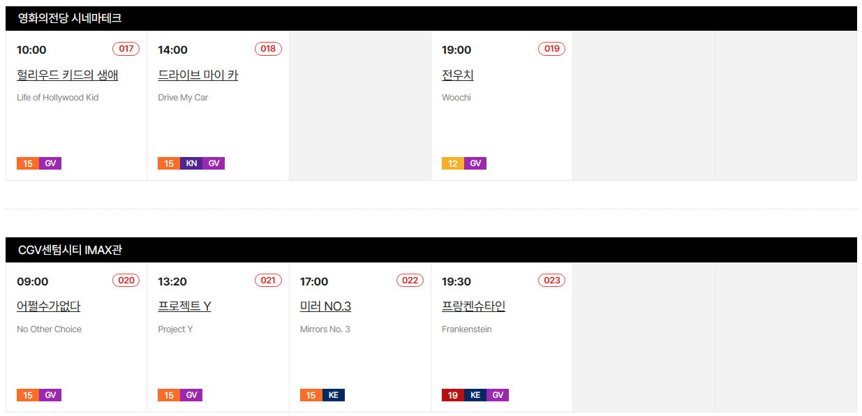 - 8/29 시간표 뜨면 관심작 리스트업(동일작 다회차·다관 포함).